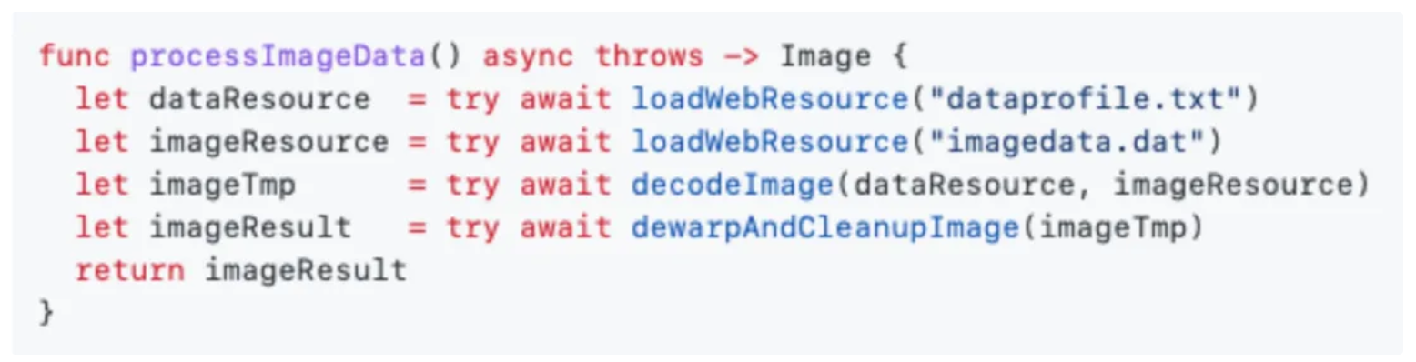 그래서 Swift Concurrency에서는 컴플리션 핸들러를 사용하지 않는다.
