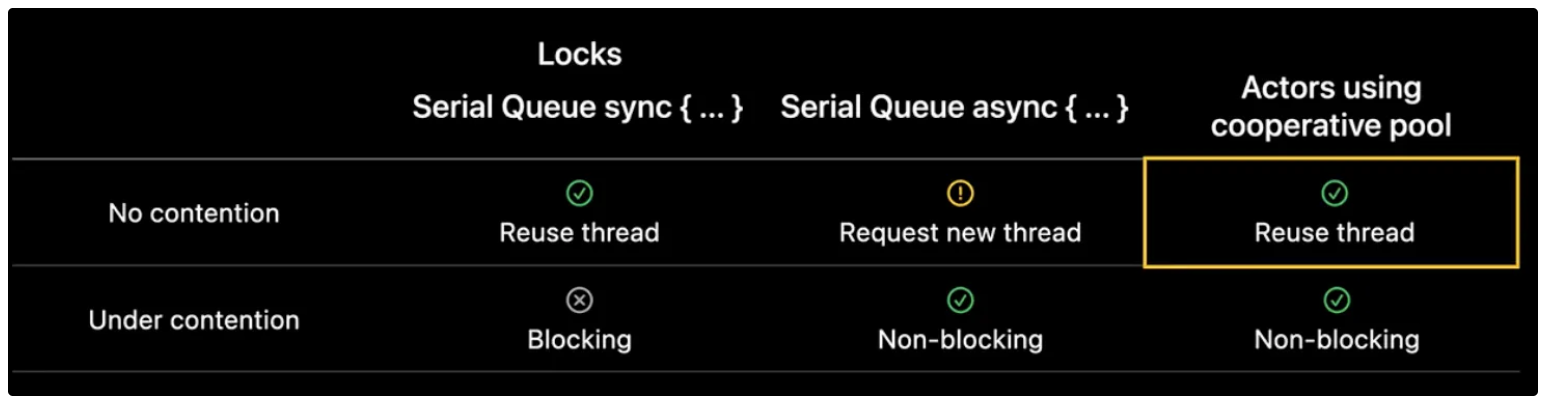 후술하겠지만 Swift Concurrency에서는 Actor가 Thread를 재활용하고,