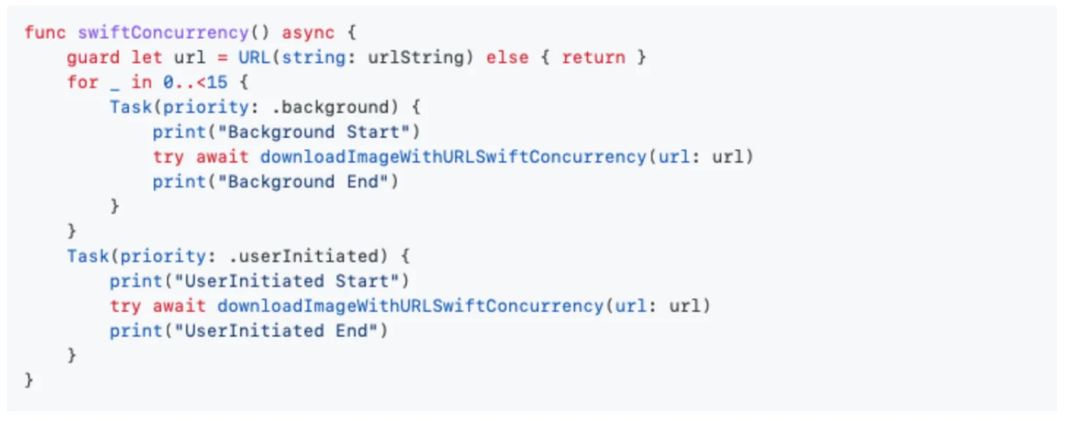 반면 Swift Concurrency는 FIFO가 아니므로 우선순위가 높은 애들을 먼저 처리해줄 수 있음