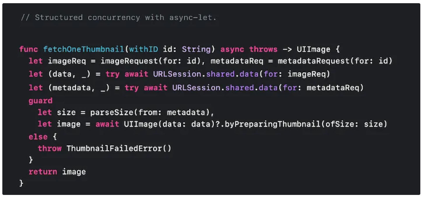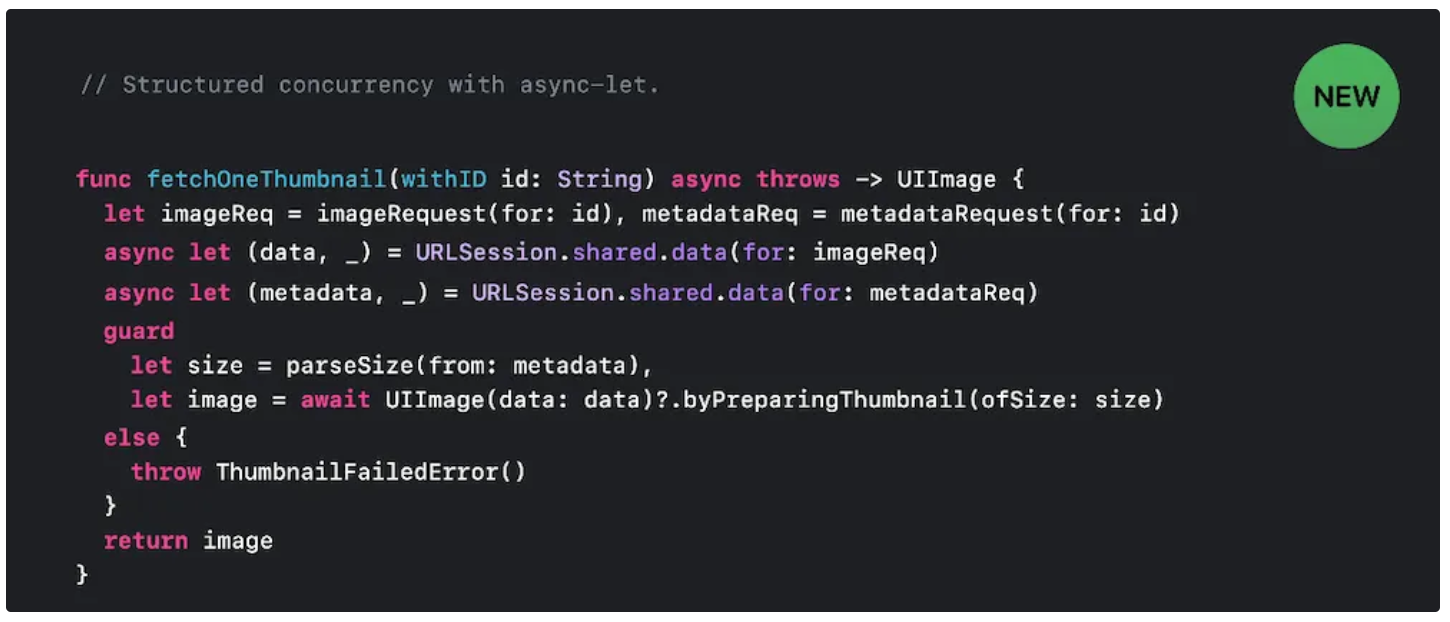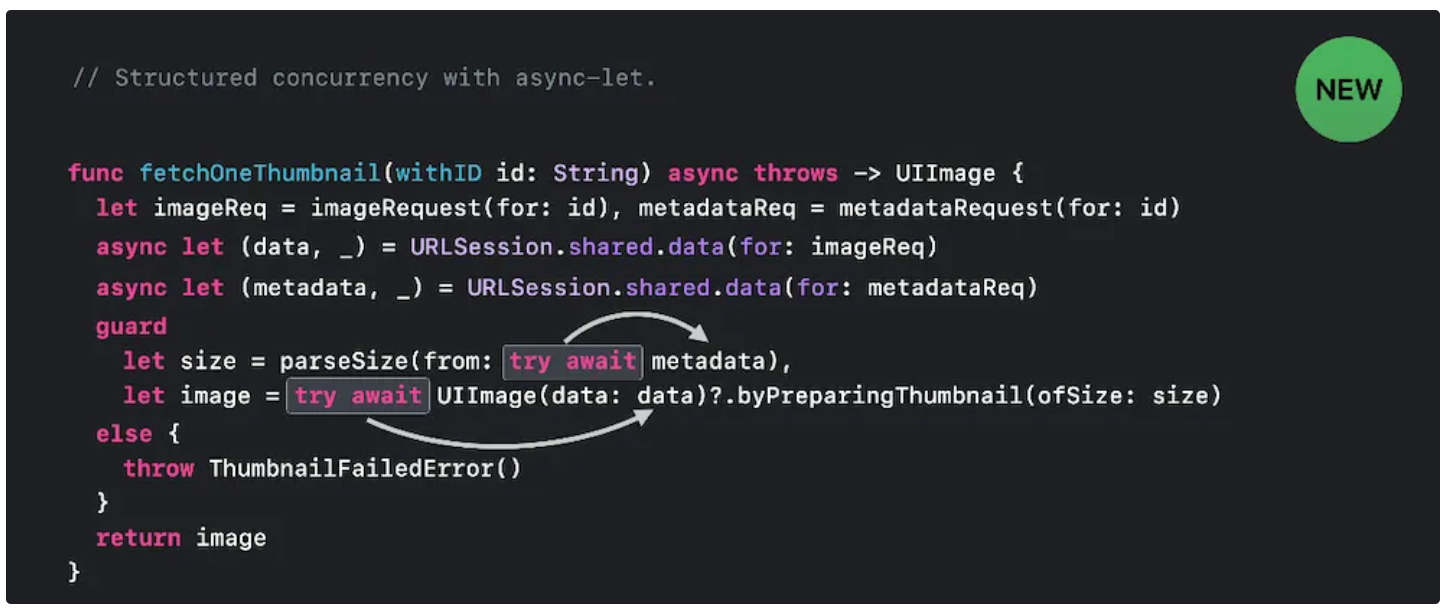 그러나, let 앞에 async let을 사용하여 동시 바인딩을 제공함