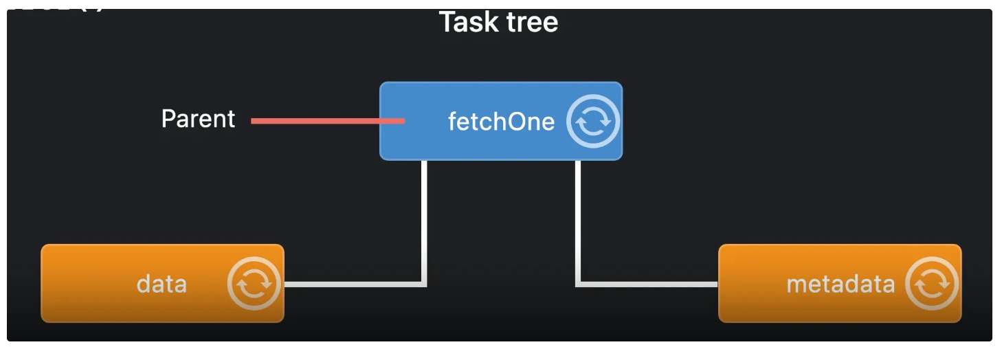 fetch~ 메소드에서 두 개의 async-let으로 두 개의 자식 Task를 만든 것.