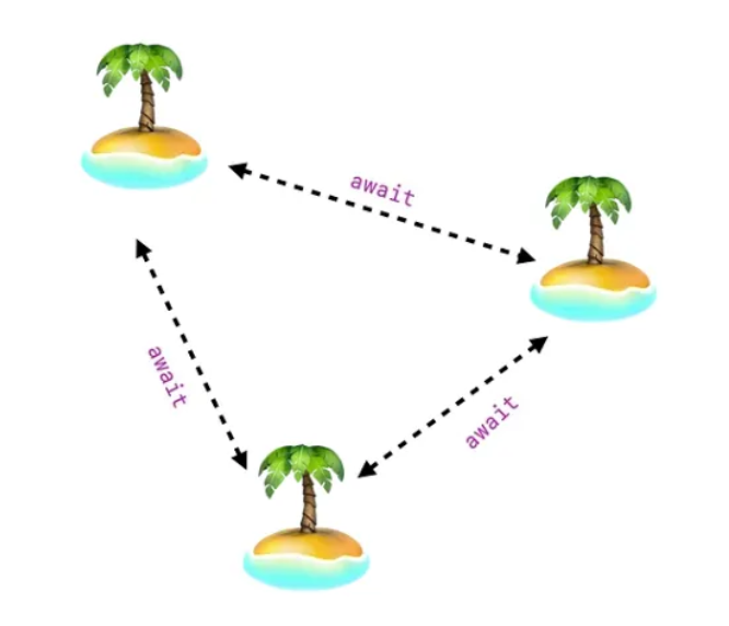 보트는 Task, 섬은 Actor라 보고 바다에 떠다니는 이들은 모두 격리되어 자신만의 상태를 갖고 있다.