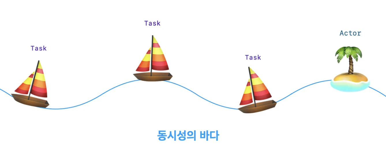 보트(Task)와 섬(Actor) 사이에도 Sendable 하지 않은 타입이 통과하지 않도록 하여 서로의 격리를 유지해야 한다.