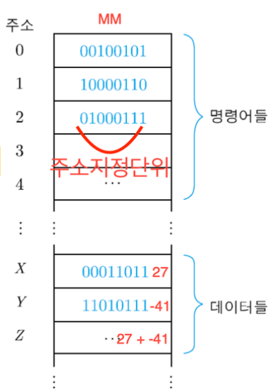 : 주소가 지정된 각 기억장소 당 저장되는 데이터 길이로, 단어 단위 혹은 바이트 단위
